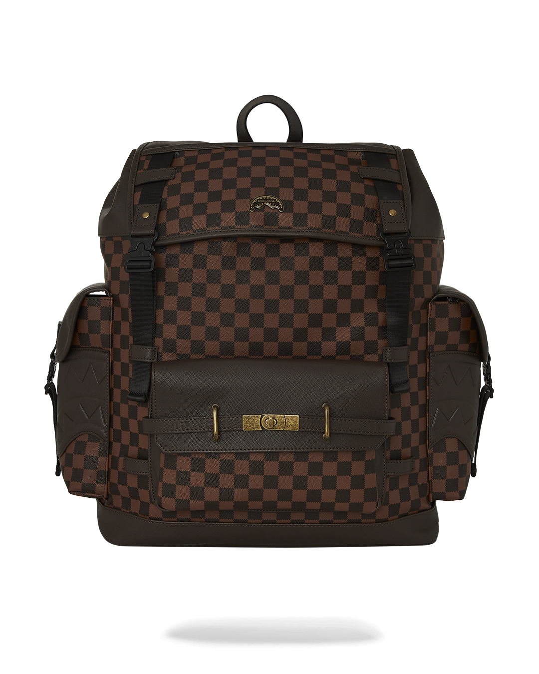 Dimensions: 18" x 6" x 11.5" • Front zipper pocket • Side pockets • Zippered Stash pocket • Separate velour sunglass compartment • Ergonomic mesh back padding • Adjustable Straps for custom sizing • Gold zippers with metal hardware • Metal "Sprayground Authentic" badge • Slide through back sleeve connects to carry-on luggage to free your hands